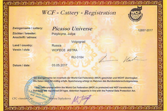 НАИМЕНОВАНИЕ ПИТОМНИКА – это не не наименование организации, это бренд, зарегистрированная в фелинологической системе фирменная приставка Заводчика к именам кошек, рожденных в питомнике заводчика.